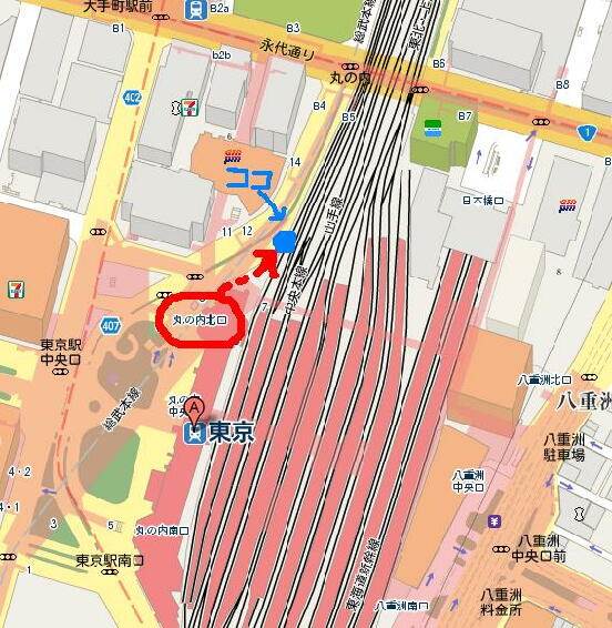 まず8時に東京駅丸の内北口にSUMMER SPLASHのプラカードを持った係の人がいますの